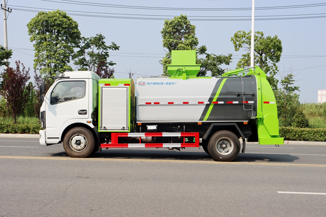 弧形罐体,边四底五/边五底六。2.长源/皖液油泵,长源/中梅多路阀,知名液压油缸。3.全推铲卸料(不带举升功能),具有干湿分离功能。液压后盖,后盖配防腐硅胶密封条。4.后门液压锁紧5.链条式提升机,可挂120/240升标准塑料垃圾桶。进料口盖液压开关。6.驾驶室内电控(提升机外部手动**),后门锁紧与后盖开关的操作具有防误操作。7.箱体带清洗装置(液压马达带动高压泵、带水箱)。