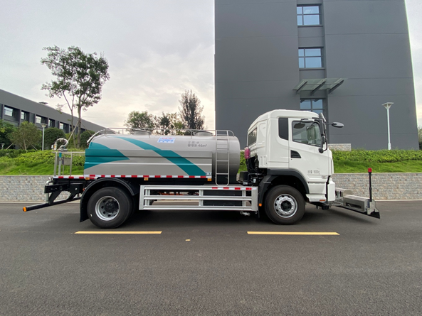 l  低压水路系统,采用双级叶轮离心泵,效率高、洒水宽度大、水**射程远,还可选装绿化浇灌及自吸功能。低压水泵由底盘变速器取力器通过传动轴直接传动。