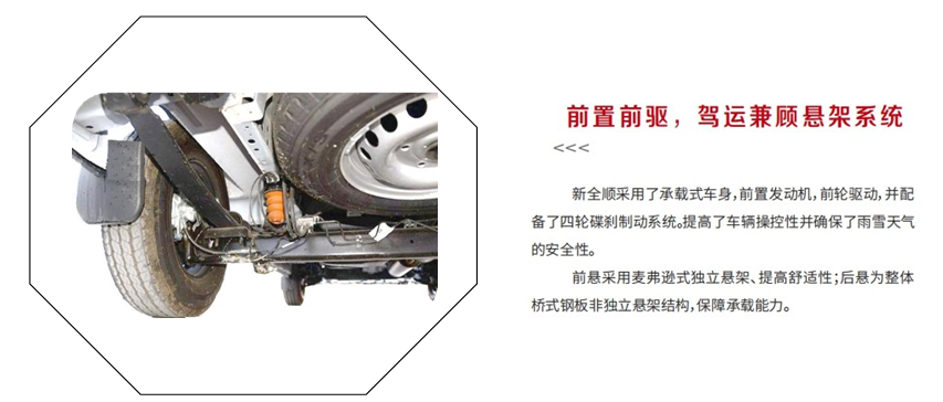 麦费逊式**前悬,钢板弹簧非**后悬 |
